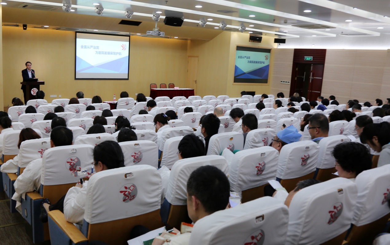 为深入学习宣传贯彻党的十九大精神,全面落实从严治党,强化三大主体责任,不断营造行风建设的高压态势,4月26日下午,龙华医院在远志楼二楼报告厅召开2018年度龙华医院全面从严治党暨行风建设大会。医院党政领导班子,党委委员、纪委委员、党支部书记,以及职能部门和临床科室负责人、护士长等参加了此次会议。