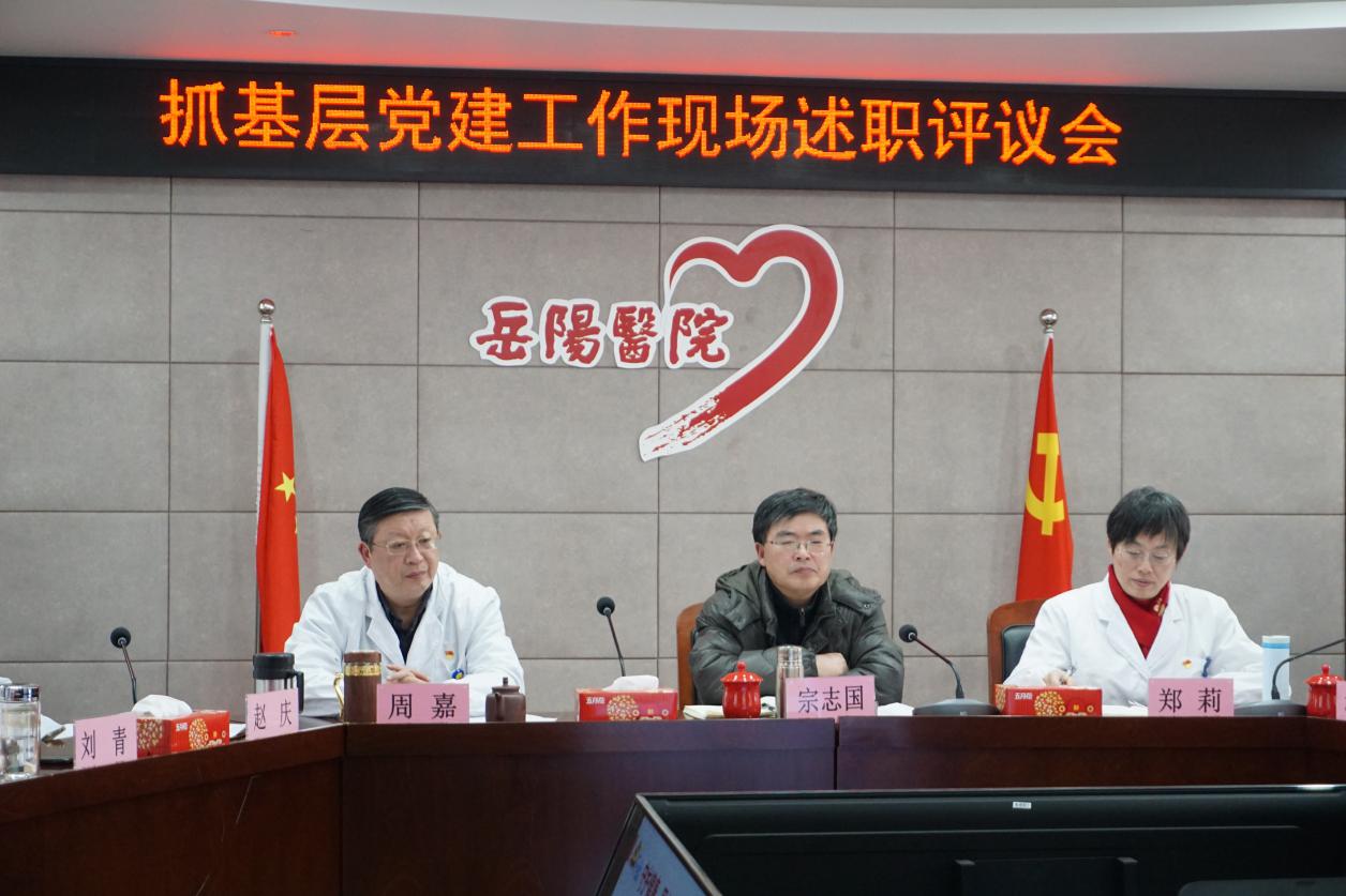 1月11日下午,附属岳阳中西医结合医院在党支部书记抓基层党建工作书面述职的基础上,召开了三分之一党支部书记现场述职评议会。我校党建督导员宗志国,岳阳中西医结合医院党政领导、党委委员和部分职能部门负责人参加。会议由医院党委书记郑莉主持。