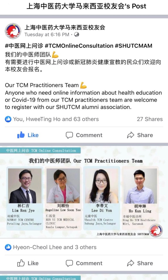 我校马来西亚校友会发起免费中医网上问诊活动