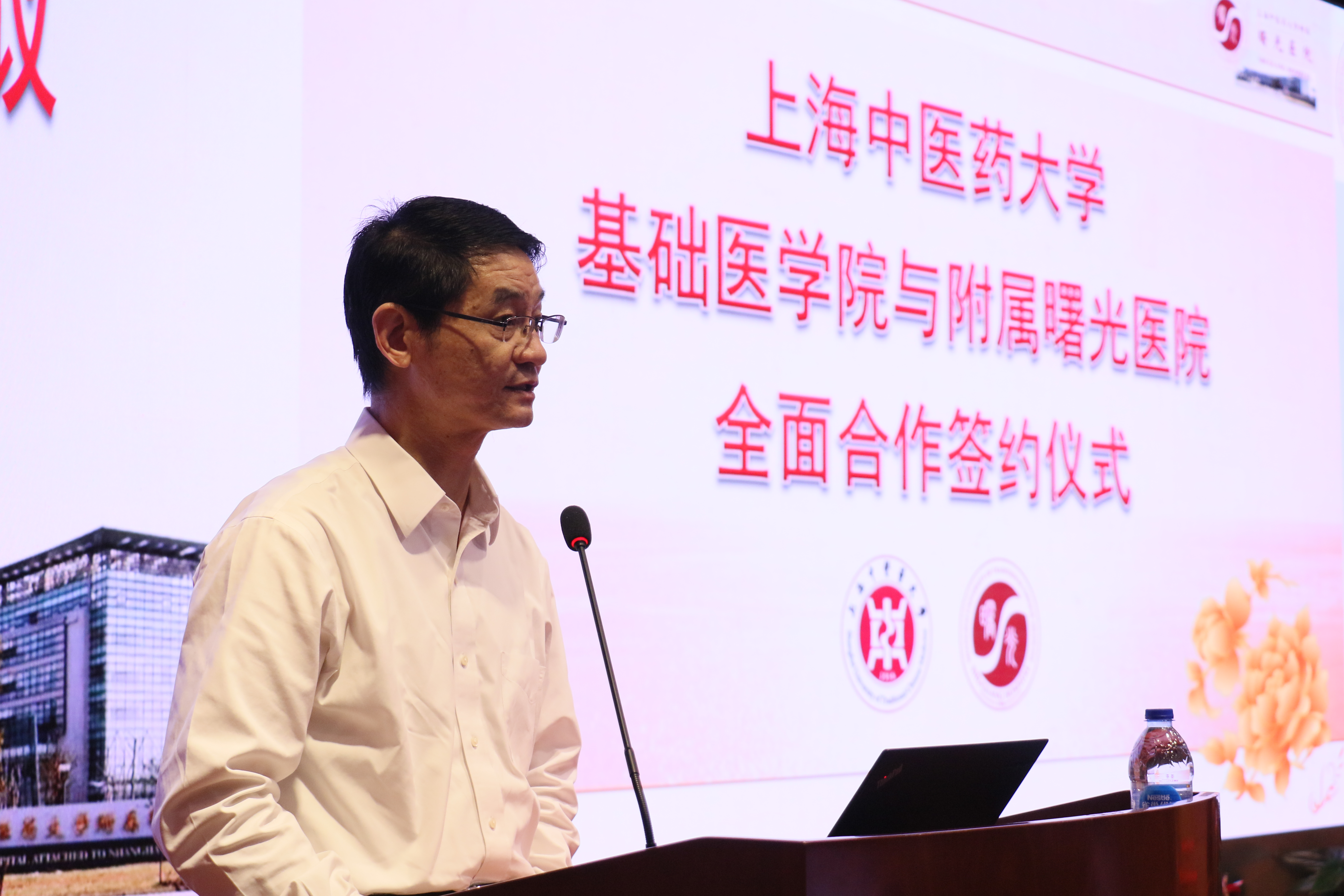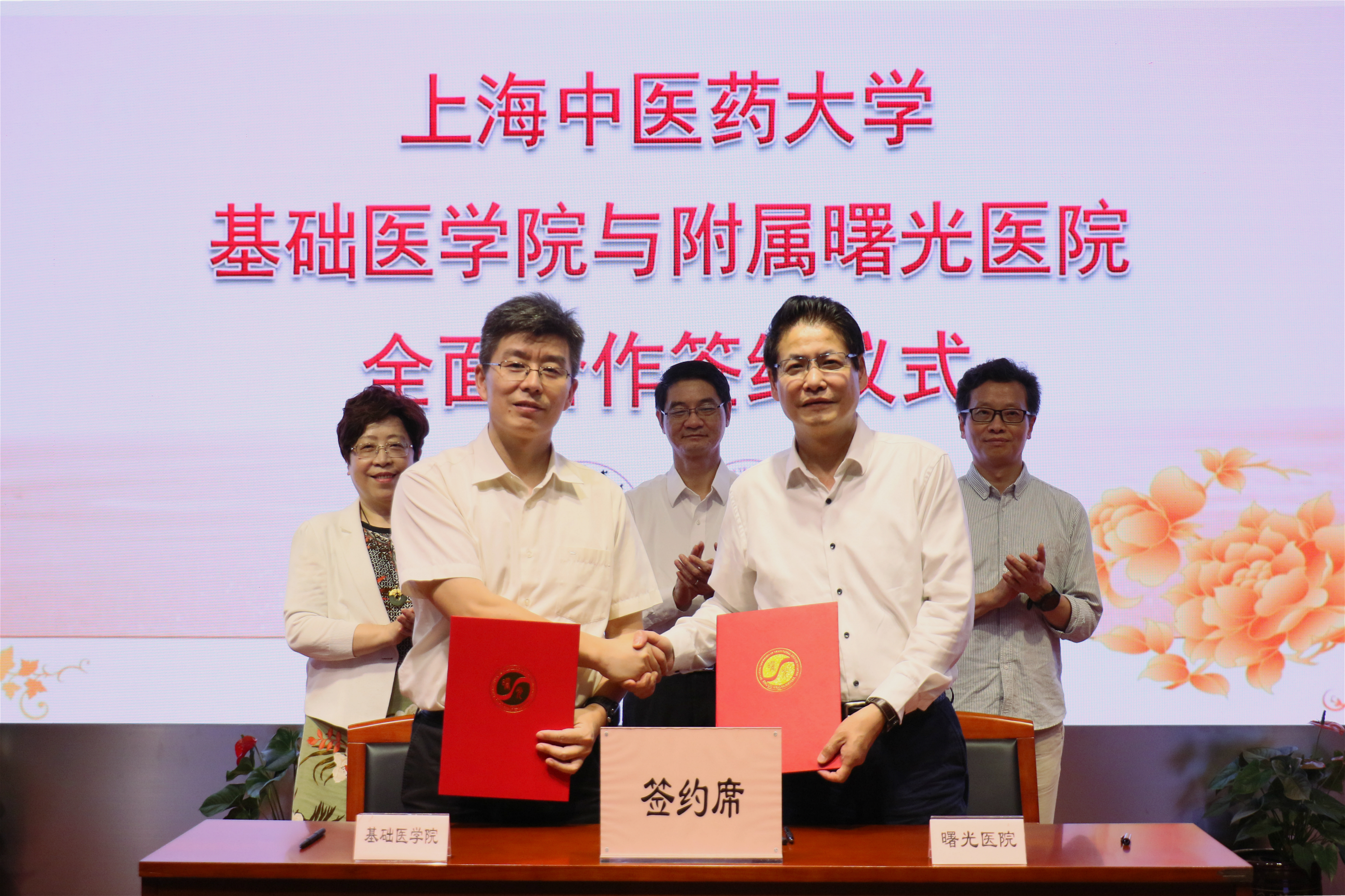 6月23日下午,我校附属曙光医院与基础医学院全面合作共建签约仪式在曙光医院东院学术报告厅举行。我校副校长杨永清、基础医学院党委书记陈晓、院长许家佗,院党委副书记陆佩丽、副院长吕嵘和郑月娟、曙光医院党政领导班子、曙光医院和基础医学院的相关科室主任、教师科研人员代表等100余人参加。签约仪式由曙光医院党委书记马俊坚主持。