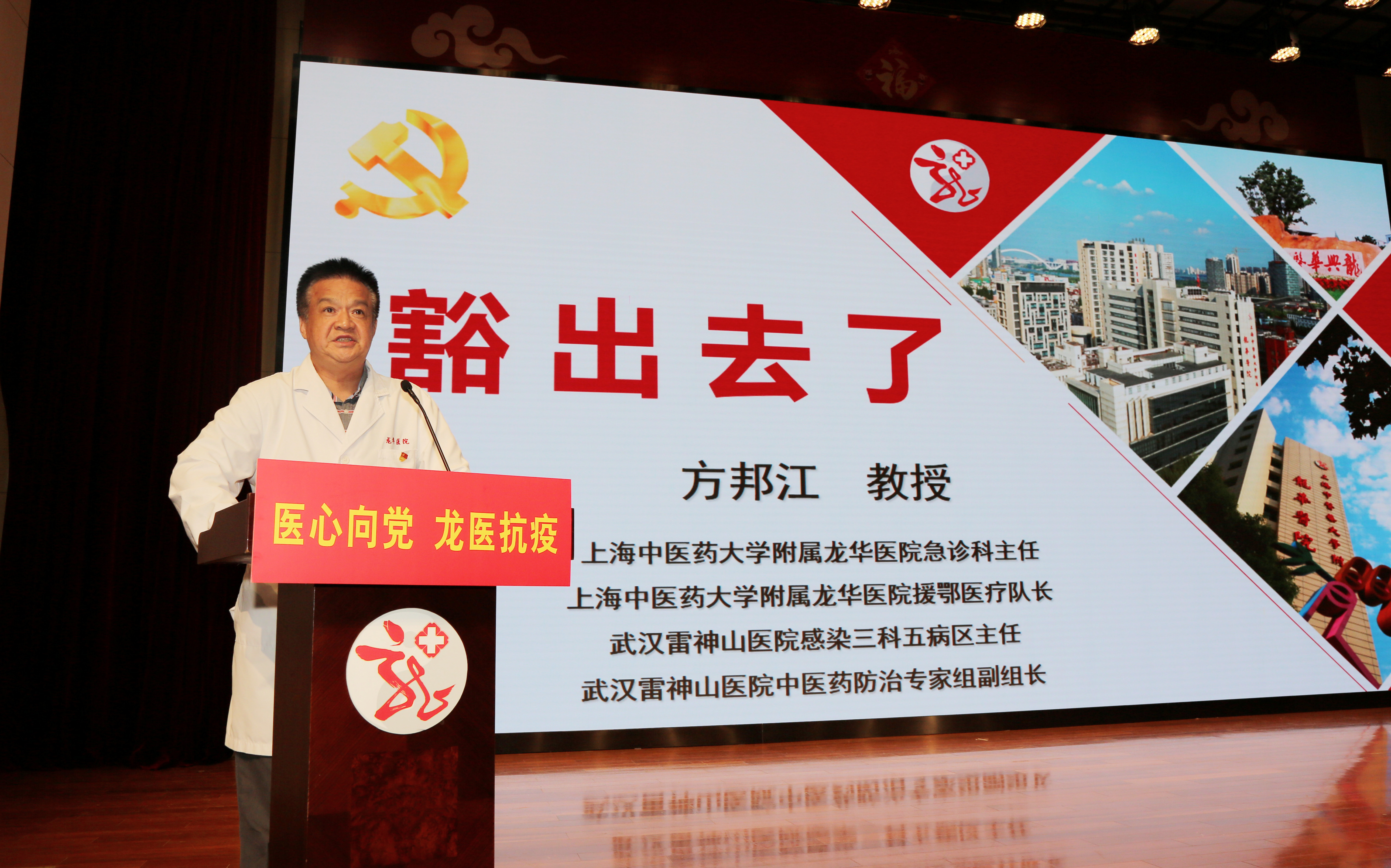 白衣执甲,逆行英雄。讲堂首位讲者为龙华医院急诊科主任方邦江教授,他不顾身体不适,主动请缨,于今年2月15日受命率队加入第四批国家中医医疗队,进驻武汉雷神山医院并担任感染三科五病区主任。他用生动的语言还原了当时面临的挑战,讲述了医护人员共同奋战、凝心聚力抗疫情的点点滴滴,病区于4月15日关舱,共收治患者114人,中医治疗率100%,其中纯中医治疗有70人。他用实际行动展现了一位党员中医人的担当。