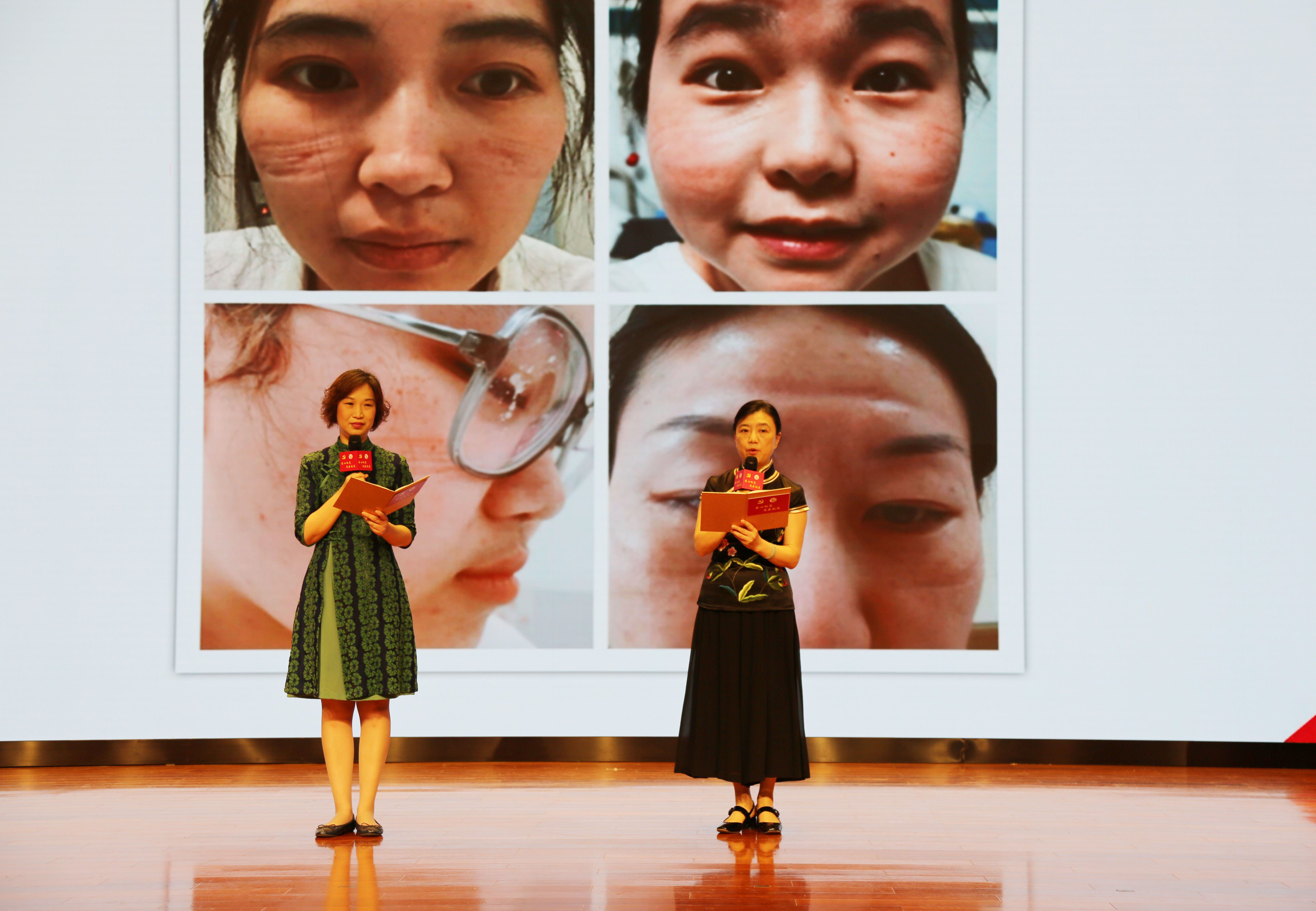 援鄂护理团队代表龙华医院护理部副主任陆巍、肺病科护士长甄暐、骨伤科护士长李群、风湿免疫科护士长席丽君向大家娓娓述说“那年那时那座城”的故事。通过“在飞机上吃的年夜饭”“脸盆妹妹”“女儿的一封信”“95后的担当”等一个个感人的小故事,向大家展现了龙医护理人召之即来,来之能战,战则必胜的决心。