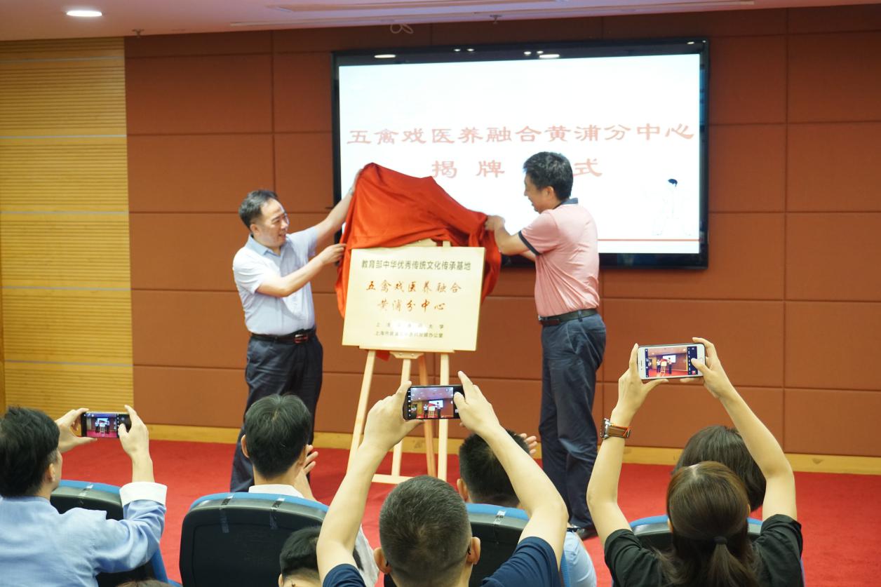 仪式上,我校体育部教师陆松廷和冯金瑞、黄浦区中医养生功法队分别带来太极拳、五禽戏等功法表演。我校“五禽戏传承基地”于2018年被教育部认定为第一批全国普通高校中华优秀传统文化传承基地。五禽戏整套功法效仿虎之威猛、鹿之安舒、熊之沉稳、猿之灵巧、鸟之轻捷,为国家级非物质文化遗产,动作简单易学,易于推广。