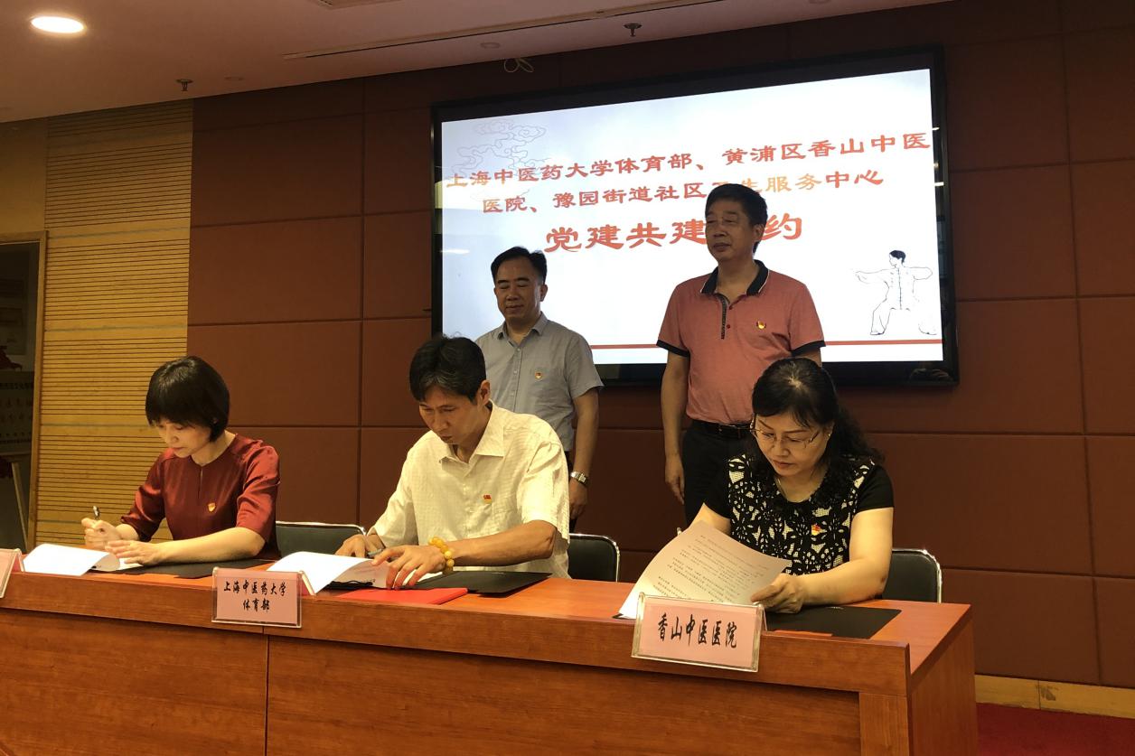 随后,柴丽萍、孙慧、龚博敏分别代表黄浦区香山中医医院、豫园街道社区卫生服务中心、我校体育部签订党组织结对共建协议。在城市党建理念的指导下,将通过优势互补,把融入城市基层党建作为推动党组织党建创新发展的有效动能,以党的建设引领社会治理创新,加强社区服务、传统养生功法创编推广、科学健身知识讲座、健康咨询、传统文化传承等工作,切实发挥党建联建平台“一盘棋”效应,聚力合作、共谋发展。