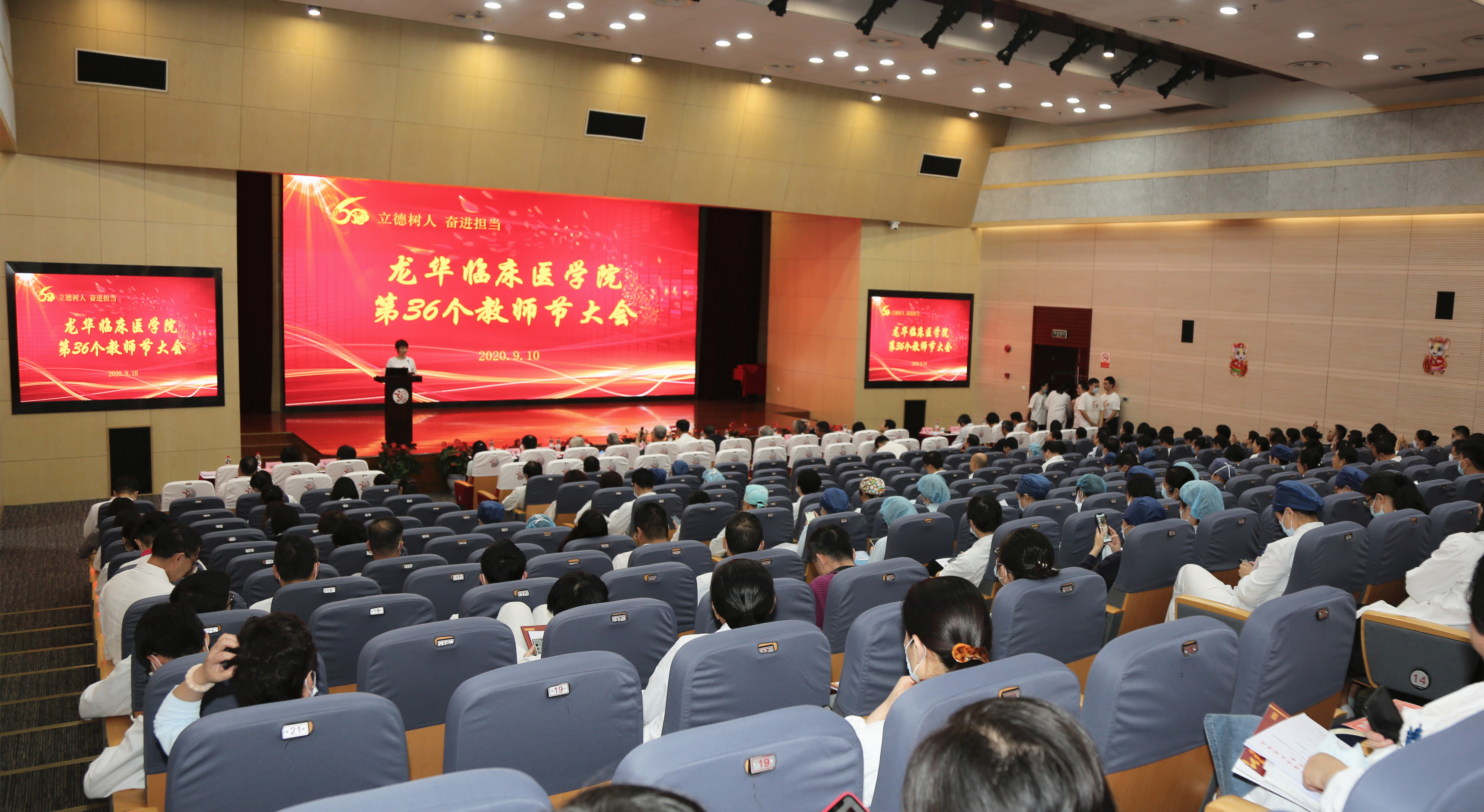 9月10日,作为附属龙华医院建院六十周年系列活动之一的龙华临床医学院第36个教师节庆祝大会在龙华医院远志楼三楼会议室举行。我校党委副书记、纪委书记许铁峰,国医大师刘嘉湘教授,上海市名中医唐汉钧教授、陈以平教授、朱培庭教授、陆金根教授、徐振晔教授,学校相关职能部门负责人、党政领导、科主任、护士长、党支部书记、教研室主任和教师、学生代表200余人参加大会。大会由龙华医院教学处处长吴晓莉主持。