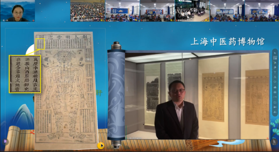 为向青少年普及中医药知识、传播中华优秀传统文化,发挥博物馆“大学校”功能,3月31日,上海中医药博物馆和上海市虹口实验学校联合主办主题为“奇经八脉,你身上有幅藏宝图”的“云端”馆校联动课程《神秘的东方力量》。来自上海市虹口实验学校、香港培敦中学、上海师范大学附属宁波实验学校、上海市大公中学的学生参与本次课程。