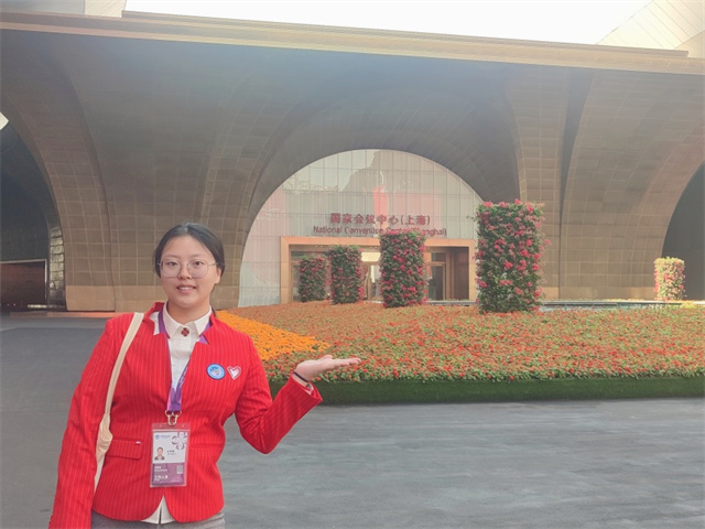 自读中学起,05后的上海小囡杭梦圆就知道了进博会这张对外名片的特殊意义,去年刚刚迈入大学校门的她就有幸通过筛选成为一名光荣的“小叶子”。