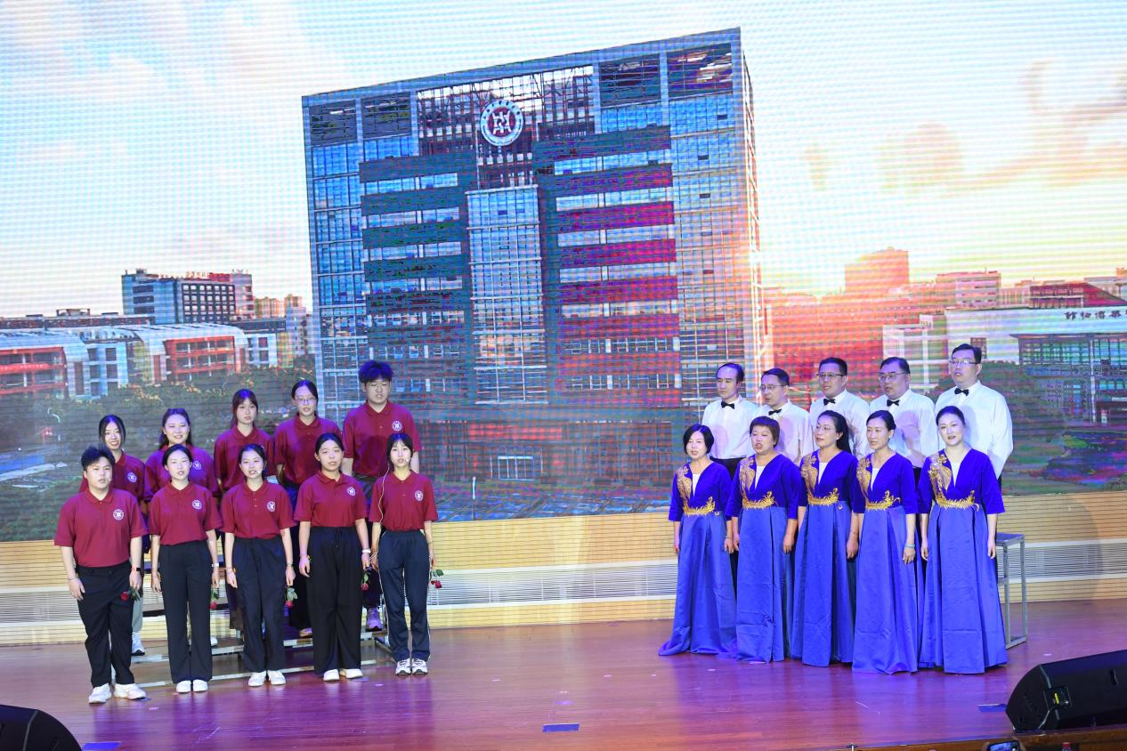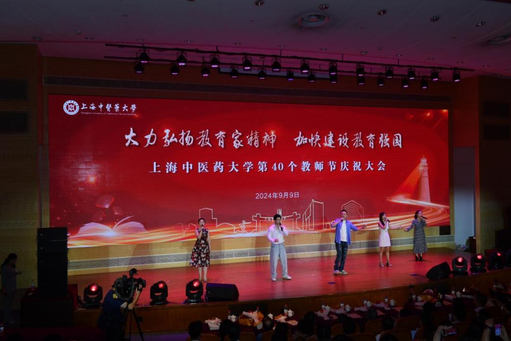 5位青年教师联袂演唱系列快闪歌曲《上学歌》《开往清晨的午夜》《追光者》《最美的太阳》,为所有教师送上节日的温馨祝福,9月9日,上海中医药大学聚焦“大力弘扬教育家精神,加快建设教育强国”主题举办教师节庆祝大会,300余名师生参会。情景表演、故事讲述、对话朗诵等多种形式,呈现了学校系统教师们在育人方法探索、引领学生成长、师道精神传承等方面的生动实践。