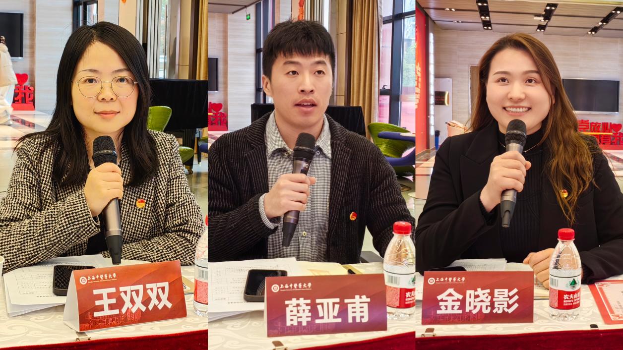 中西医结合学院团委书记王双双,教工、研究生联合团总支书记薛亚甫,宝山医院团委书记金晓影分别围绕“传承创新、融合赋能,服务青年成长”“思想引领聚合力,师生联动促发展”“以青春之笔墨,绘就‘医’路答卷”主题,分享了在思想引领、创新赋能、医务青年岗位建功等方面的工作经验和思考,纷纷表示将进一步用实干诠释新时代团干的责任与担当。