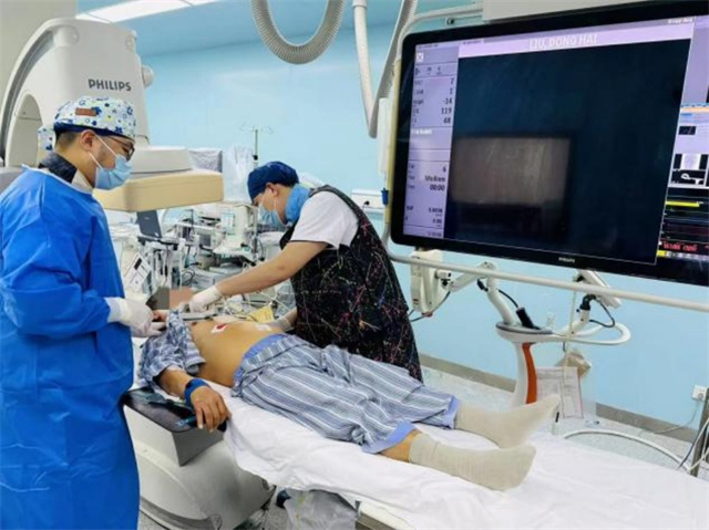 凌晨时分,龙华医院DSA导管室门口的术中灯骤然亮起,52岁的急性心肌梗死患者王先生刚完成冠状动脉造影,屏幕上的心电图波形突然扭曲成室颤的锯齿状风暴。“立即除颤!”主刀医生的指令未落,男护士孙鑫岳已从铅衣口袋中抽出导电膏涂抹均匀,同时用膝盖顶开抢救车锁扣,动作如精密机械般无缝衔接。第三次除颤后,当主动脉内球囊反搏导管需要植入时,他托举患者髋部协助穿刺的动作依然稳如磐石——30斤铅衣下的手术服早已汗透,生死竞速后,窦性心律终于在监护仪上划出平稳弧线。