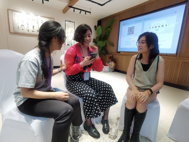 徐素晶、莎乐美和徐逸婕在研学营上交流。