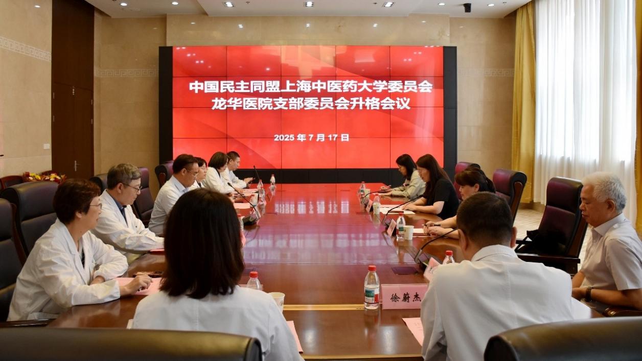 7月17日下午,中国民主同盟上海中医药大学委员会龙华医院支部委员会升格会议在龙华医院召开。民盟上海市委组织部部长汪皓俊,民盟上海市委组织部三级调研员朱盈,民盟上海市委常委、民盟上海中医药大学委员会主委袁灿兴,上海中医药大学组织统战部部长周宁慧,龙华医院党委书记陈跃来,龙华医院组织统战部部长周洁出席。