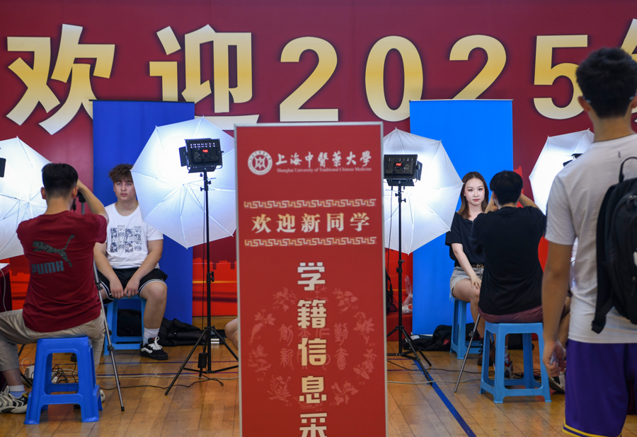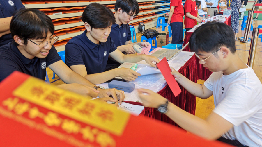 “家长请移步学生创新中心休息。同学,报到通道从中间进。”体育馆门口,志愿者为家长们指路,也是一份“婉拒”。独立完成注册、入住、搬运行李、整理宿舍,“独立”的第一课从报到日开始,这已是上海中医药大学坚持多年的传统。
