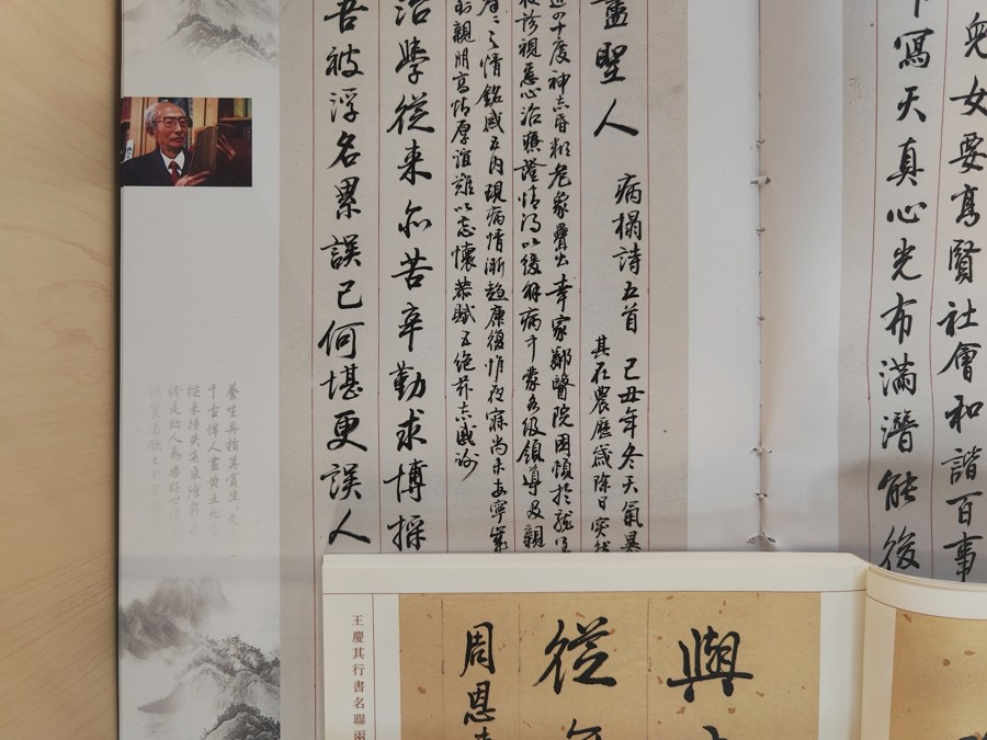 9月10日教师节,上海中医药博物馆三楼,走到“岐黄墨韵・师道匠心”王庆其教授中医药文化书法展的“C位”——有两块不大的老旧牌子:左边那块是20年前挂牌的“裘沛然名师工作室”,右边那块则是书法展的作者名牌:上海市名中医。这正是年届八旬的上海中医药大学终身教授王庆其,向他的老师——国医大师裘沛然先生的最高致敬。
