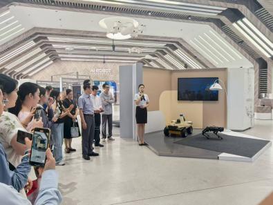 在张江机器人谷及国地共建人形机器人创新中心(上海),师生们在专业人员引导下,沉浸式参观医疗机器人、脑机接口机器人、康复机器人、四足机器人等前沿研发成果,了解机器人产业发展现状和典型应用场景,直观感受科技发展为传统中医药学带来的机遇与挑战。