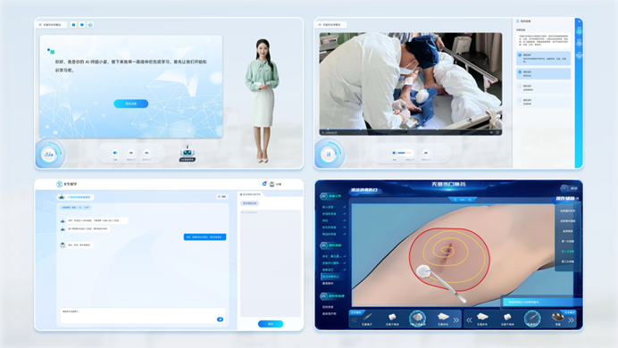 “龙华智学”平台由龙华医院自主研发,深度融合人工智能与现代教育理念,以“数字人”为核心纽带,集成临床理论教学、临床思维实训智能体、沉浸式3D虚拟仿真、全天候智能学伴、知识与能力图谱和智能教学分析引擎等多项前沿技术,率先构建AI多模态交互式中医临床技能智慧培训体系。这一体系突破了传统医学教育中理论与实践相割裂、教学与训练相分离的局限,为人才培养提供了智能化、系统化的新方案。