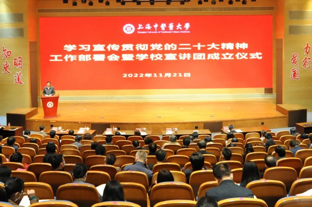 11月21日下午,我校召开学习宣传贯彻党的二十大精神工作部署会暨学校宣讲团成立仪式。校党委书记曹锡康对学校系统学习宣传贯彻党的二十大精神的实施方案进行了全面部署。校党委中心组成员,教师党支部书记、青年教师班主任、马克思主义学院教师,“杏马”理论宣讲团、“星火”大学生红色精神宣讲团成员在图书馆裙楼四楼报告厅主会场参加会议。校党委副书记、纪委书记许铁峰主持会议。