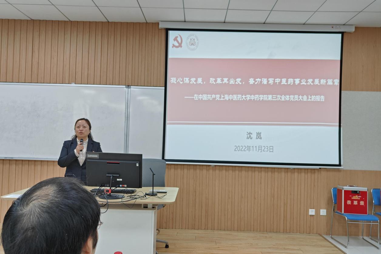 11月23日下午,中共上海中医药大学中药学院委员会党员大会在10105教室召开。学院领导班子成员和全体师生党员参加会议。会议由学院党委副书记王倩蕾主持。