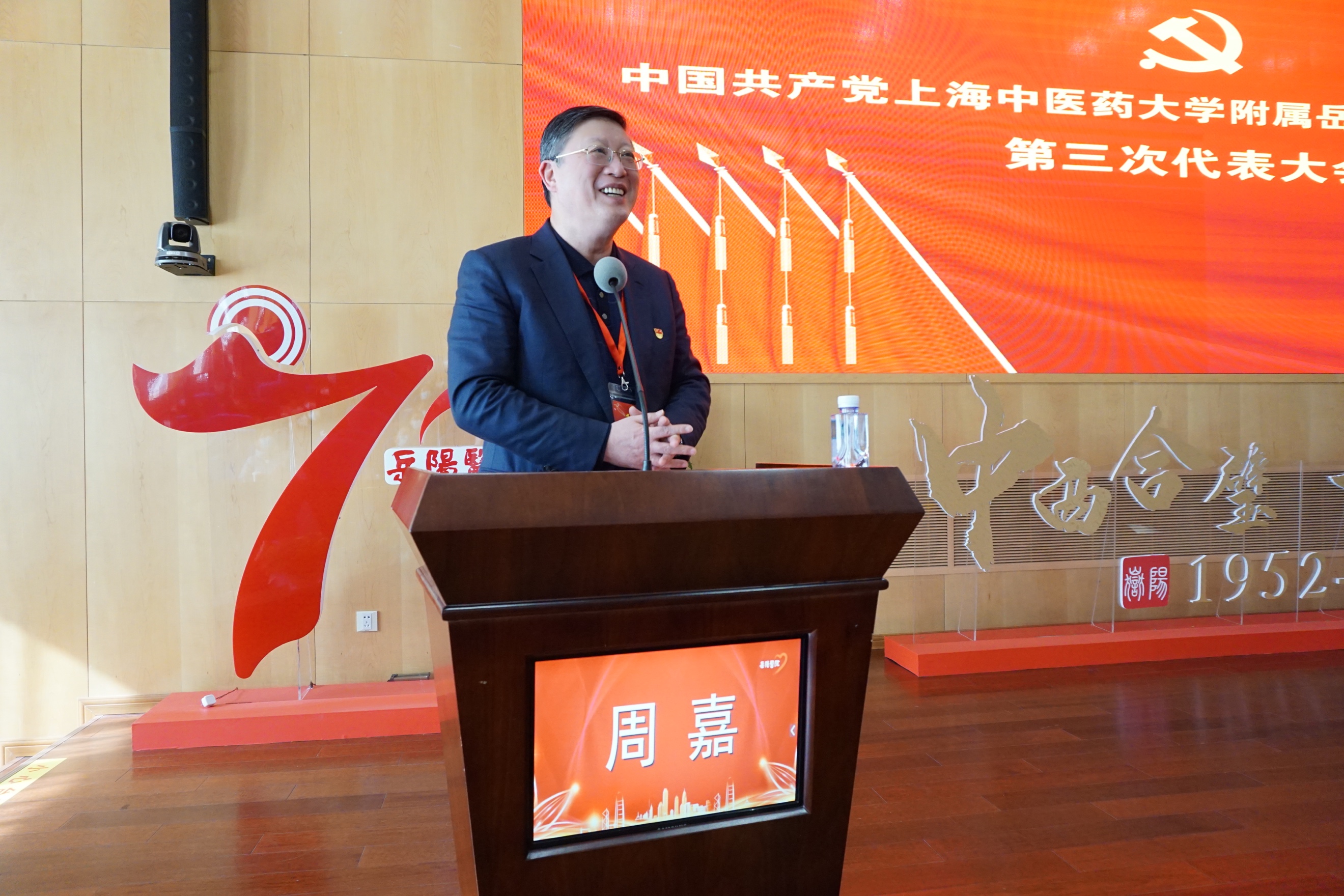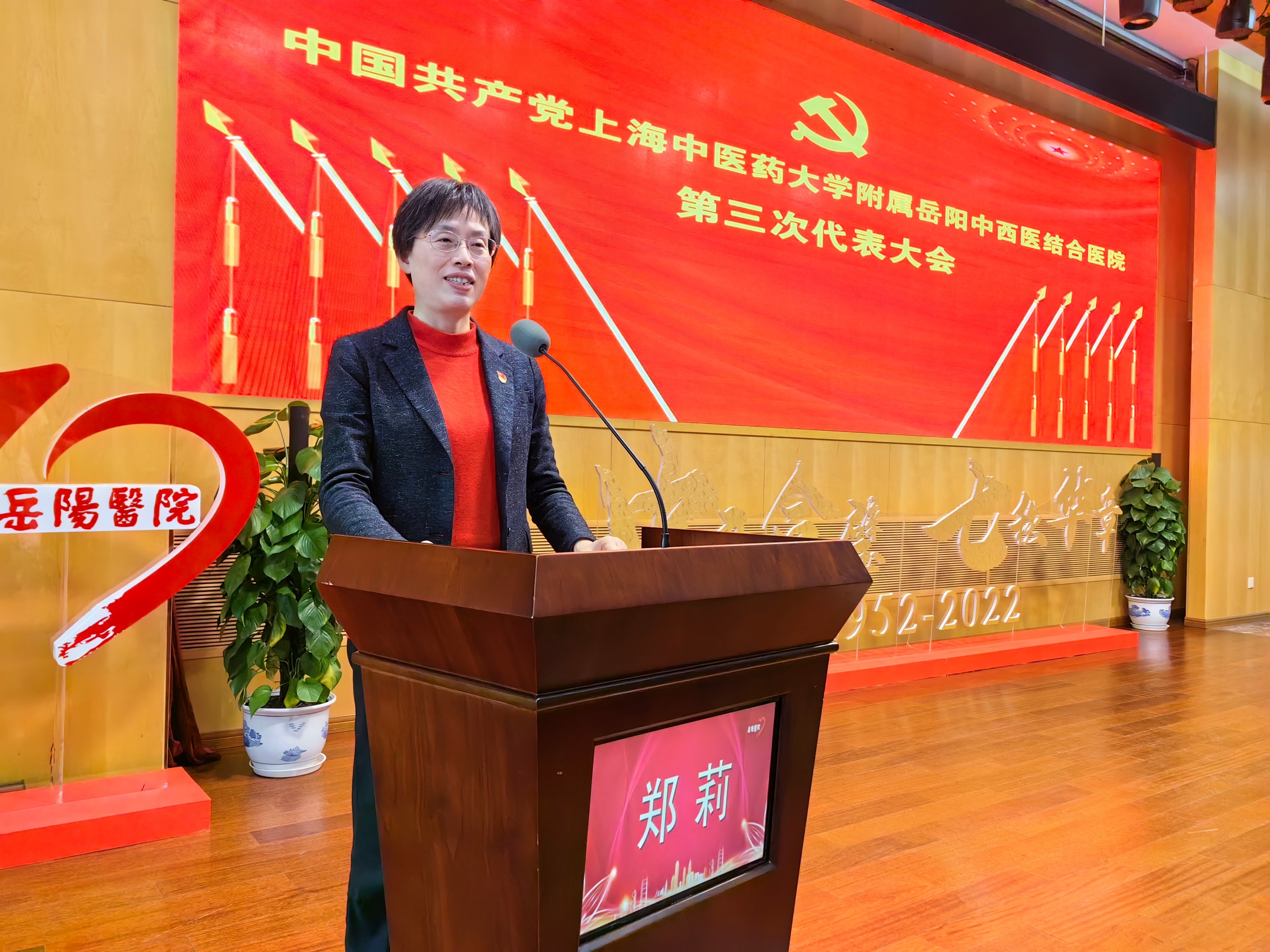 1月18日下午,中国共产党上海中医药大学附属岳阳中西医结合医院第三次代表大会在学术报告厅召开。校党委副书记、副校长朱惠蓉,党委常委、组织部(统战部)部长王璐出席,附属岳阳中西医结合医院50个党支部的162名党员代表参会。