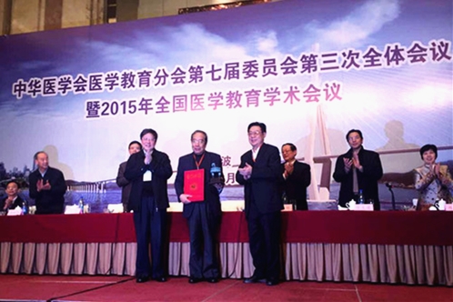 严世芸写下了“坚守、融合、发展”这六个大字,期盼上中医坚守中医优势,融合多学科知识,在发展中不断创新。
