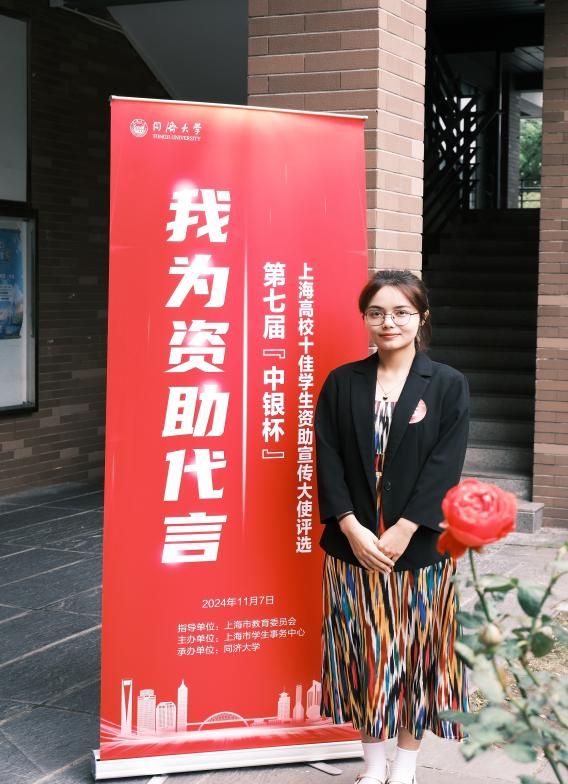 我校米萨瓦尔·依马木同学在上海市高校“十佳学生资助宣传大使”比赛...