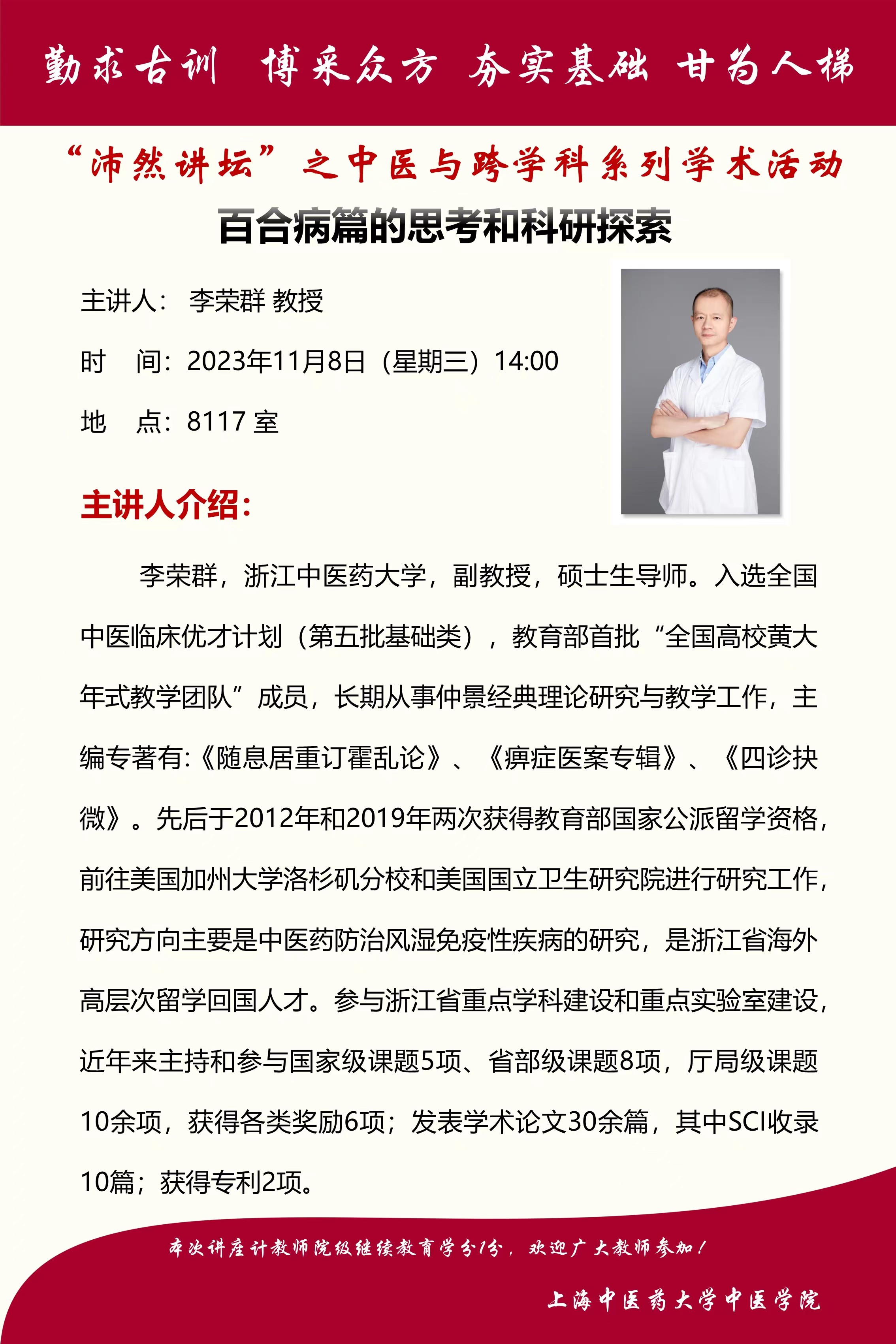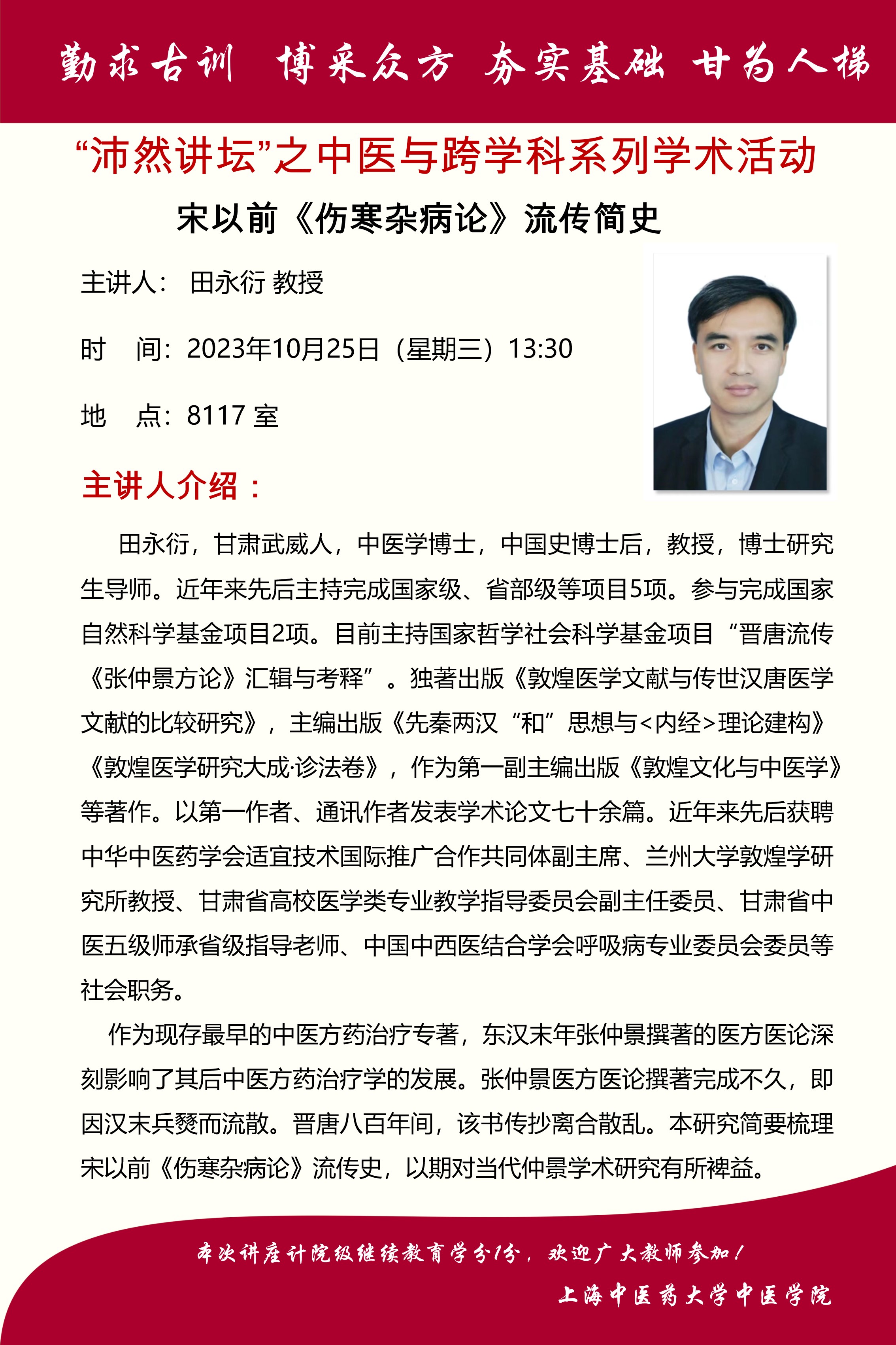 上海中医药大学附属岳阳中西医结合医院李福伦教授与我院王丽慧讲师受邀做《从历史到现在:特应性皮炎的古今论道说》讲座