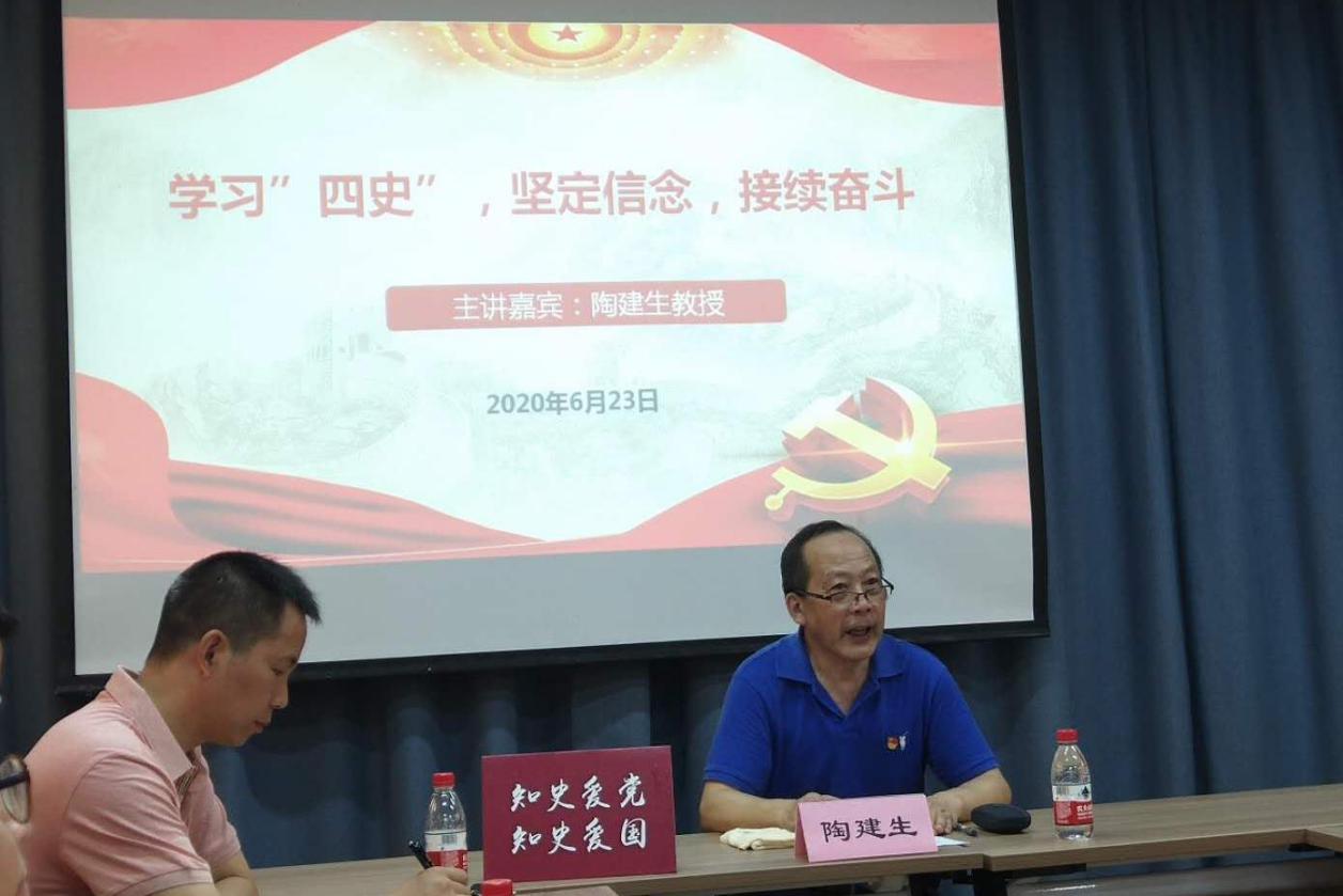 陶建生从“为何学”“学什么”“怎样学”三个方面分别介绍“四史”学习的重点要求。他指出,学习“四史”是为了汲取信仰之力,把稳思想之舵;汲取党性之力,初心薪火相传;汲取发展之力,使命勇担在肩。他强调,“四史”学习要以党史为主线,了解历史事实、理清历史脉络、把握历史规律、得出历史结论;要做到坚定信念、永葆先进、支撑起强大的精神支柱,实事求是、与时俱进、筑牢思想基石,百折不挠、勇于展现高超的政治智慧。