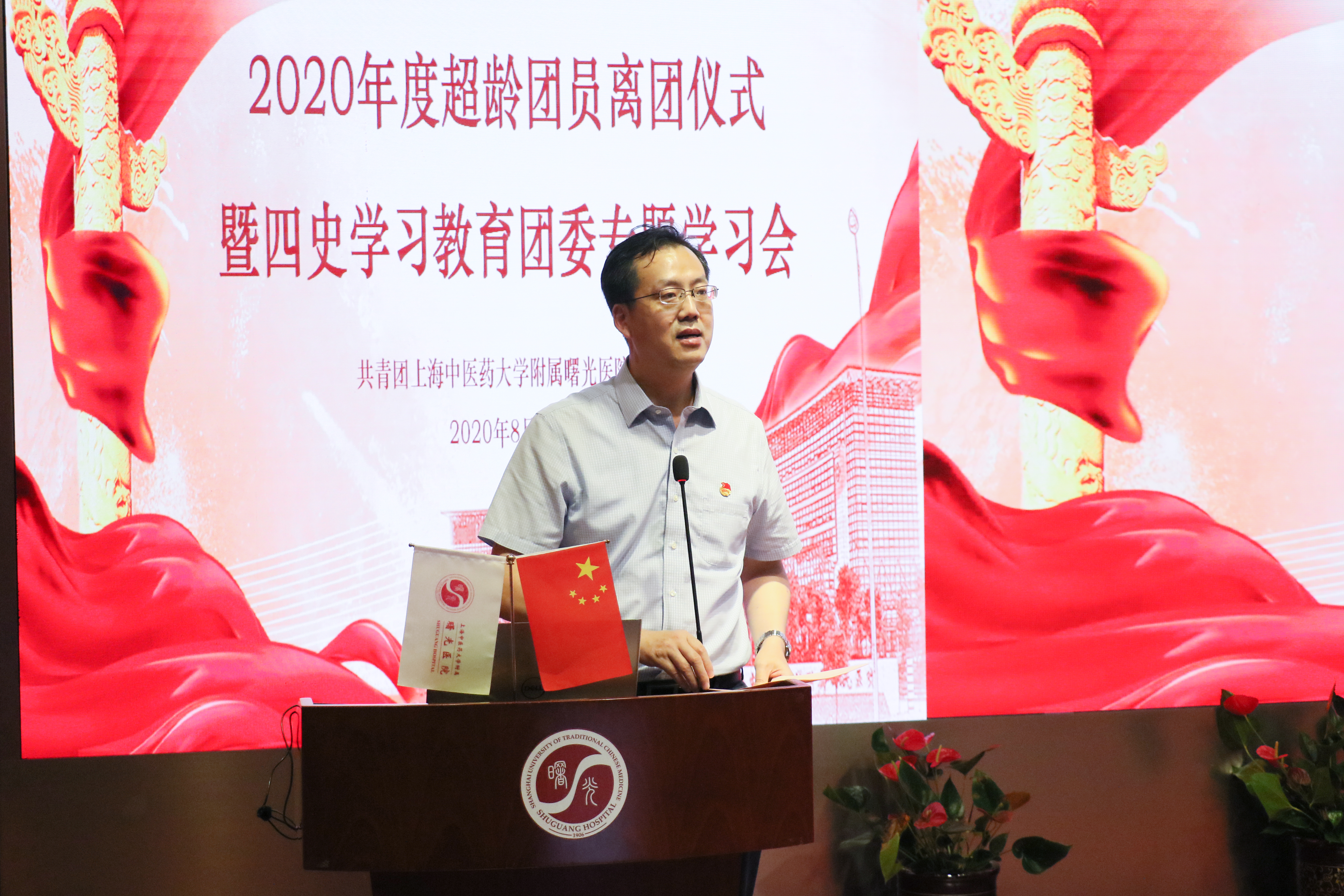 8月27日,附属曙光医院2020年超龄团员离团仪式暨“四史”学习教育主题团课在医院学术报告厅举行。中共一大会址团支部书记、周公馆副馆长马玮佳,上海中医药大学团委副书记万婕参加活动,曙光医院党委副书记姚政、组织统战部主任练慧出席,医院团干部和70余位团员青年到场参与。