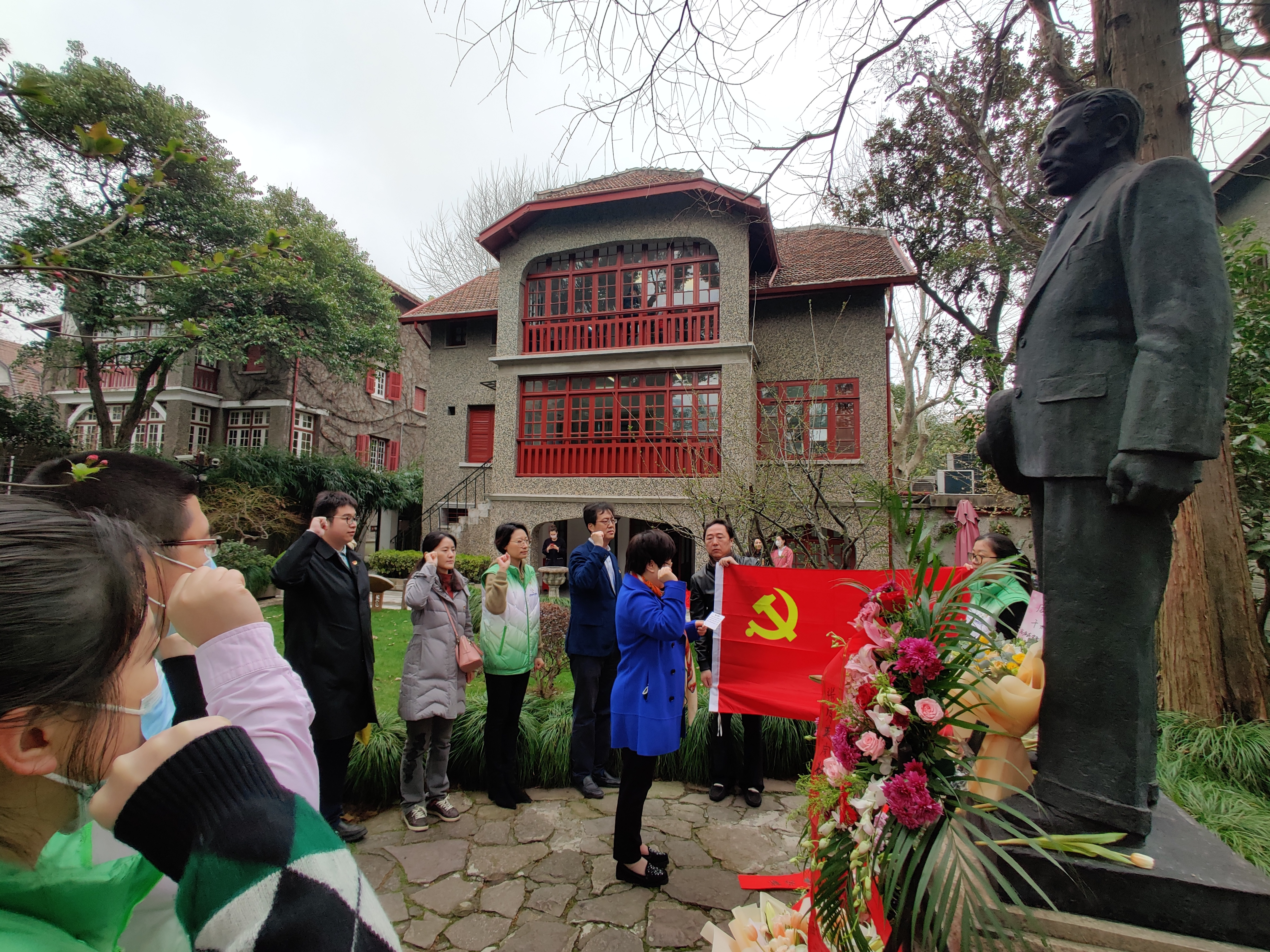2021年3月5日是周恩来同志诞辰123周年。当天上午,曙光医院行政第一党支部和团委联合开展“迎建党百年,筑健康防线”周公馆学雷锋主题活动。曙光医院党委书记马俊坚和党委副书记姚政带领到场人员举行了周恩来同志诞辰123周年纪念仪式,向周恩来雕像敬献鲜花,深情三鞠躬,表达对周恩来同志的无限敬仰与怀念。敬献鲜花仪式后,由马俊坚领誓,在周恩来雕像前举行了“重温入党誓词”集体宣誓活动。中共一大会址纪念馆党总支副书记宋依璇为“薪火”青年讲解团赠送了书籍《周公馆的故事》,并带领在场人员参观中国共产党代表团驻沪办事处史迹陈列馆。