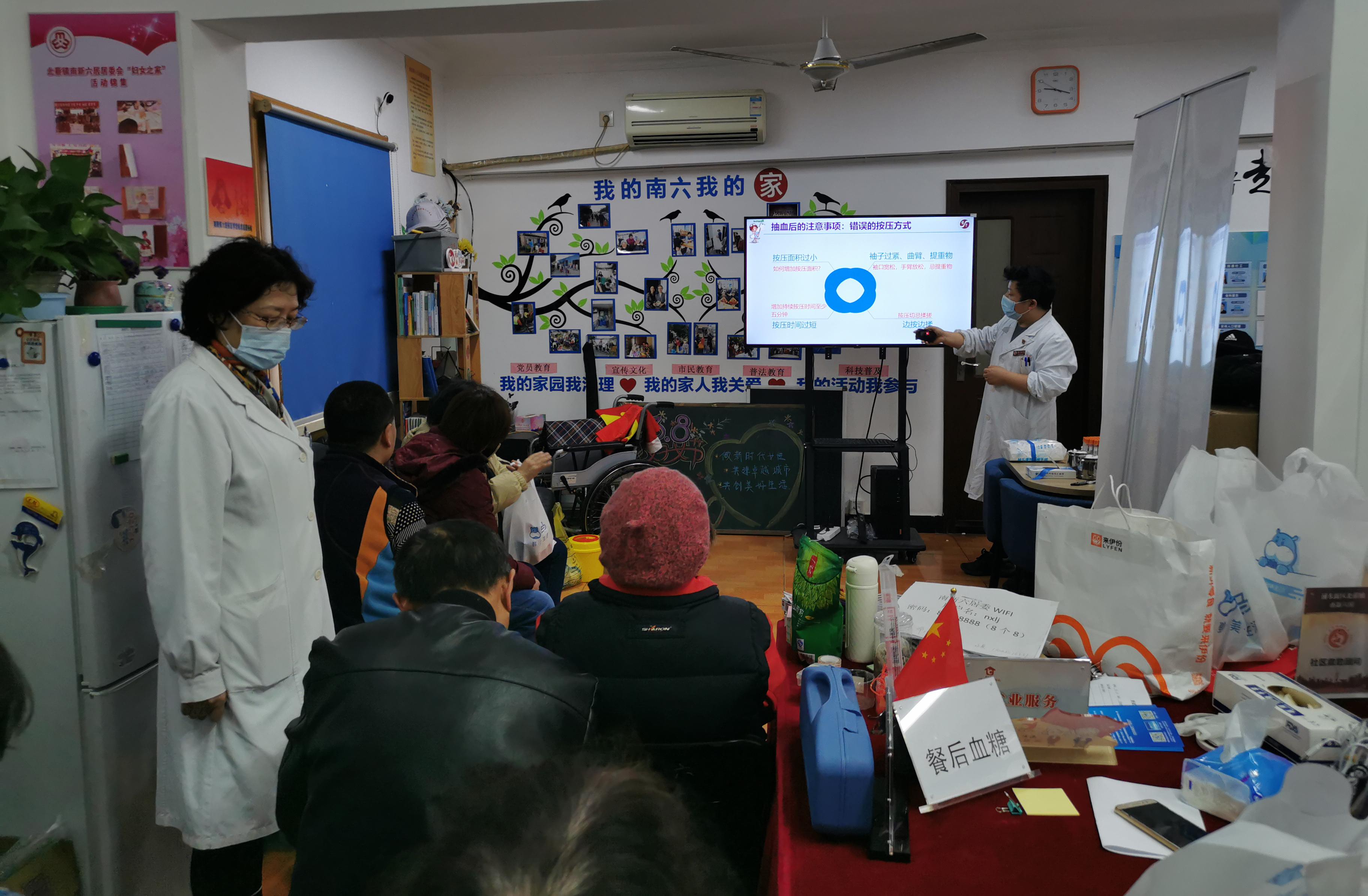 综合第三党支部的一些党员早早来到北蔡南新社区居委活动室,为结对的20位残障人士开展健康体检活动。每个人抽完血还能领取到支部三支部为每位残障人士精心准备的营养早餐,边吃早饭边听健康科普讲座之《抽血,那些事》。党支部书记张珏带领党员们来到结对多年的脑瘫患者俞先生家中,为其提供上门体检咨询服务,同时询问身体状况并给与今后护理建议。