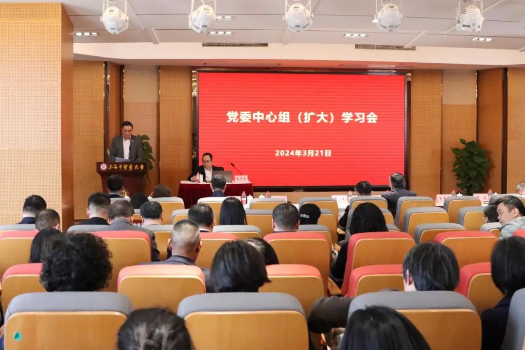 3月21日,校党委中心组(扩大)学习会在行政中心301会议室举行,专题学习全国两会精神。全国政协委员、复旦大学上海医学院副院长朱同玉,全国人大代表、上海市针灸经络研究所所长吴焕淦受邀作辅导报告。校党委中心组成员,校本部教师党支部书记、青年教师班主任,组织员、辅导员,马克思主义学院教师参加学习。校党委副书记沈辉主持会议。