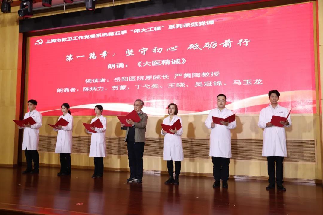 4月23日下午,上海市教卫工作党委系统第五季“伟大工程”系列示范党课之“医道初心担使命 中西合璧铸辉煌”在我校附属岳阳中西医结合医院开讲。