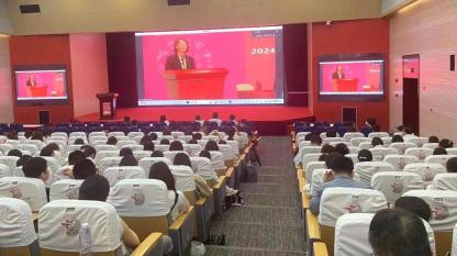 为深入学习贯彻习近平新时代中国特色社会主义思想,扎实推进党纪学习教育,6月5日,我校面向全体学生党员开展2024年度第二次集中培训,也是全校毕业生党员离校前的一次集中教育,学校系统800余名学生党员在中医药国际标准化大楼辅楼301报告厅主会场及8个分会场同步参加培训,学校相关职能部门和直属党组织负责人出席。培训由校党委组织部部长、党校常务副校长周宁慧主持。