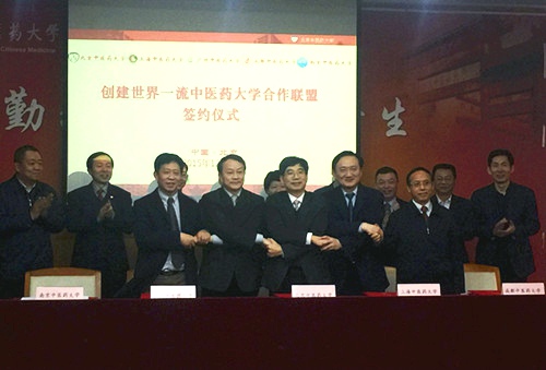 月22日下午,“创建世界一流中医药大学合作联盟”签约仪式在北京中医药大学举行。国家中医药管理局人事教育司司长卢国慧,北京中医药大学党委书记吴建伟、校长徐安龙,我校校长徐建光、副校长胡鸿毅,广州中医药大学校长王省良,成都中医药大学校长梁繁荣,南京中医药大学校长胡刚出席并签署《创建世界一流中医药大学合作联盟框架协议》。