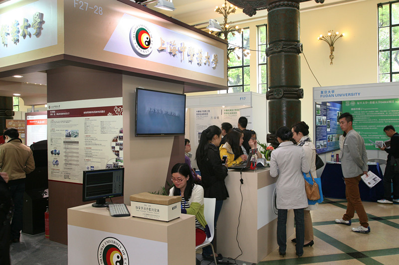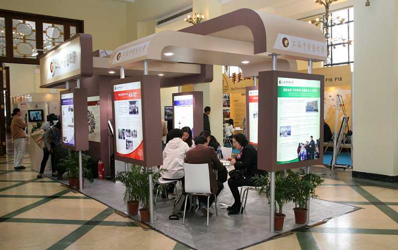 的主题,突出展示了我校中英合作药学项目和中英合作护理学项目的办学特色和成果业绩,同时介绍了学校对外交流和国际教育的重点项目以及我校立足国际标准建立康复医学专业的具体案例。另外,以推拿手法参数测定仪的使用、常见中草药鉴定在触摸屏的播放等形式,让观众近距离接触中医药,直观了解中医药学的现代化教学。精致而开放的布展设计、丰富多彩的互动活动和专业特色鲜明的办学项目吸引了大量观众前来观展和交流。