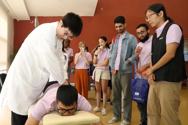 石氏伤科,是享誉全国的中医骨伤科流派之一,具有150多年的传承历史,入选国家级非物质文化遗产传统医药项目。在石氏伤科展台前,国际学生们不仅观看了石氏伤科“十二字”手法演示,还能亲身体验到中医推拿、正骨等外治疗法带来的感受。华东师范大学的泰国籍学生廖承祖在接受了简单的推拿治疗后,惊喜地表示:“这真是太神奇了,我感觉整个身体轻松了许多,今后希望有更多的机会进一步了解中医!”