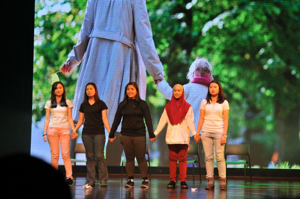 马来西亚留学生钟雪颖、罗丝琪、宝婕诗、陈姿蒽、蔡欣婷共同演绎了顾城的诗《我是一个任性的小孩》,由美国留学生Denise Ho与中国学生夏晓玮伴奏,诗歌表达了青年人面对残酷的现实,依然执着追求梦想的精神。在整场诵读大会的最后,我校留学生民乐团(扬琴-李慧盈,吉他-陈国念,笛子/萧-邓顗丰,二胡-黄军铭)为现场观众带来了民乐串烧,由《在那遥远的地方》、《天路》、《茉莉花》、《夜上海》、《玫瑰玫瑰我爱你》、《赛马》六首经典名曲组成,长达10分钟的名曲串烧由中外乐器演奏,旋律时而轻松活泼,时而严肃深沉,给全场耳目一新的感觉。