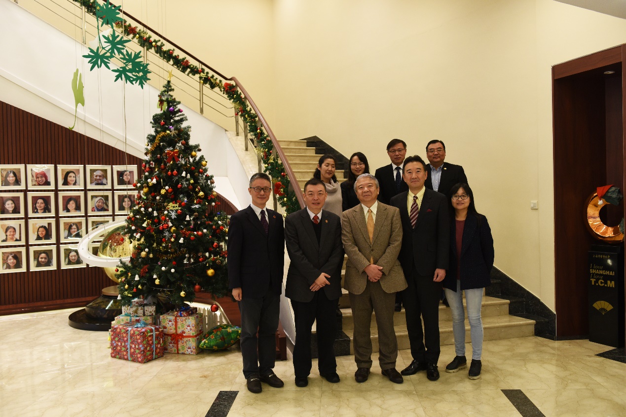 胡鸿毅对日本医学柔整针灸专门学校校长一行的到来表示热烈的欢迎和诚挚的感谢。他简要回顾了两校合作十年来的情况,同时介绍了我校的基本情况和近年来在国际教育方面取得的成果,并期望为了共同的传统医学事业的发展,要让两校的友谊代代相传。奥田久幸对我校的热情接待与这十年来上海中医药大学在支持交流合作上给予的帮助表示感谢,并期待双方2019年十周年纪念活动的开展。