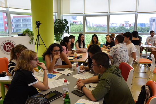 此外,暑期学校组织了两次中外学生的小组式学习交流活动暨成果汇报及两次三国四校教师研讨会。三国四校的医学生们生动活泼地展示了自己在暑期学校学习的心得体会,并呈现了精心设计、蕴含深刻国际医学人文理念的项目LOGO标志。三国四校教师们总结今年的暑期学校工作,并探讨即将在法国里昂举行的2020年第四届“三国四校”医学人文暑期学校准备工作。