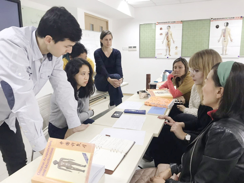 我的老师都非常好,他们也很友善。临床的课也比较多,让我多练习针灸和拔罐。另外,我在上海第一个月学了中文。虽然时间很短,上海中医药大学的汉语课也非常好,过了几个月,我通过了HSKK中级和HSK5,也在医院跟病人聊一聊。