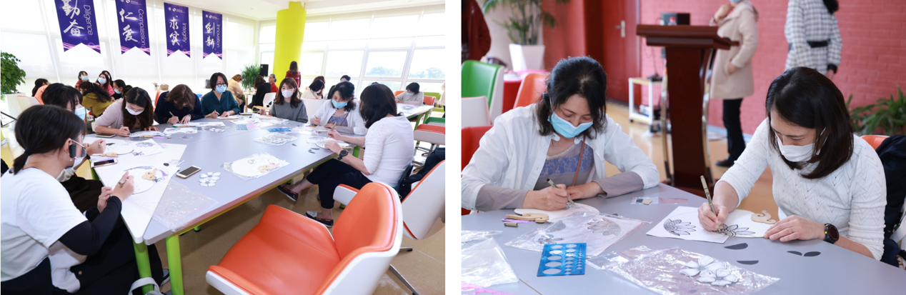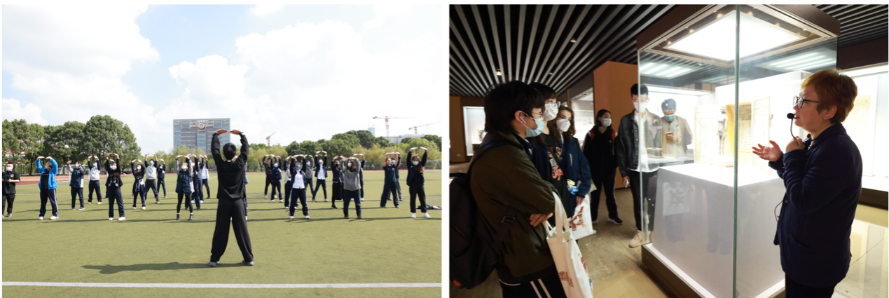 在29日的互动环节中,国际学生动手体验了我国传统工艺品——线雕团扇的制作过程,体会到了中华文化的独特魅力。一把团扇、一支画笔,在指导教师的引导下,一幅幅奇思妙想跃然扇上,栩栩如生,创意十足。此外,活动当天还在学校操场组织了中医功法体验,并在下午参观了上海中医药博物馆。