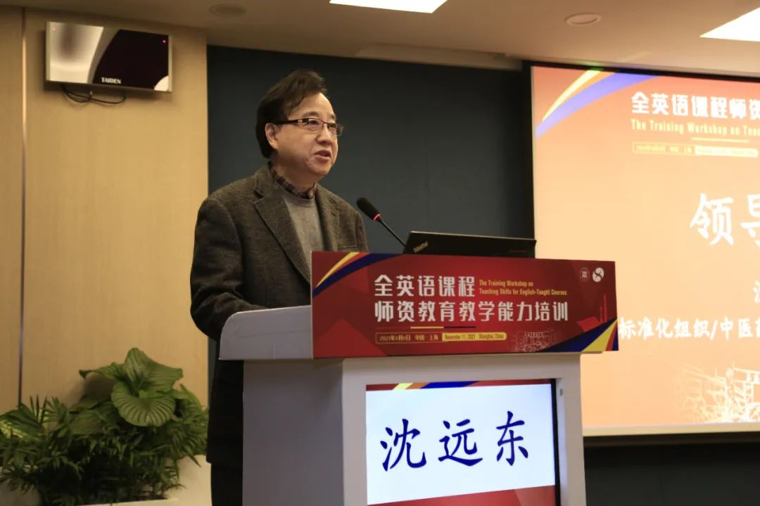为进一步提高我校对外开放教育课程质量,提升对外教育教学骨干教师的国际化教育视野和中医英语授课能力,我校国际教育学院于11月11日举行全英语课程师资教育教学能力培训会。校党委书记曹锡康、国际标准化组织/中医药技术委员会主席沈远东,人事处、教务处、国交处、对外联络处等相关职能部门负责人,各二级单位及临床医学院的相关负责人出席开幕式。校第四届骨干教师代表、全英语教学骨干等近70人参加线下学习。200余名学校和临床教师收看在线直播。培训会由国际教育学院副院长颜彦主持。
