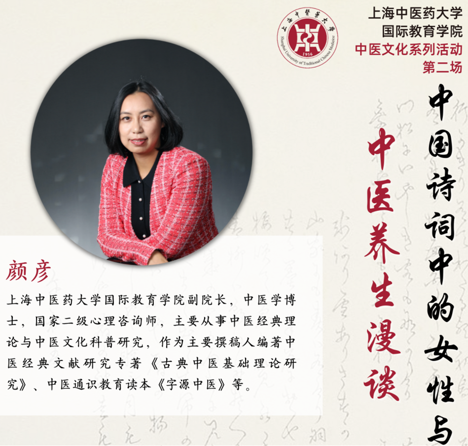 “4.20国际中文日”到来前夕,国教学院汉语教学中心中医文化系列讲座第二场开讲了。国际教育学院副院长颜彦博士带来精彩讲座“中国诗词中的女性与中医养生漫谈”,与外国友人云端联动,共飨汉语之美、中医之妙。