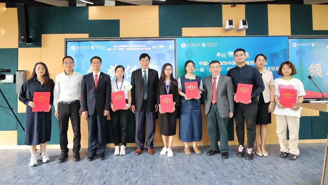 会上进行首届“济德杯”中医药国际研究生学术论坛颁奖仪式。论坛收到来自14个国家27个单位的国际学生的112篇论文投稿,其中24名学生脱颖而出,由6名获奖代表上台领奖。