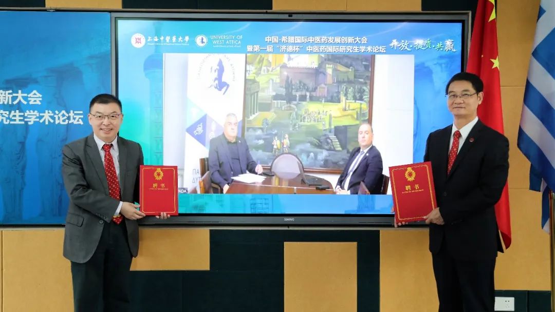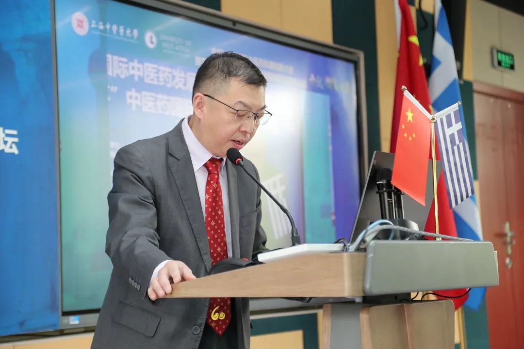 为加强中医药国际教育交流与合作,促进中医药文化国际传播,构建高水平、多途径、宽领域的中医药国际教育与学术交流合作平台,中国-希腊国际中医药发展创新大会暨第一届“济德杯”中医药国际研究生学术论坛于9月21日在我校举行。中国科学院院士陈凯先,上海市卫生健康委员会副主任、市中医药管理局副局长胡鸿毅,我校副校长杨永清、舒静,上海康臣医疗集团总经理詹国锋,希腊西阿提卡大学校长Professor Panagiotis E. Kaldis,孔子学院外方院长George Georgoudis参加会议。来自十几个国家的30名国际学生线下参会,1000余名国际中医药专家和学生线上参会。会议由我校国际教育学院院长韩丑萍主持。