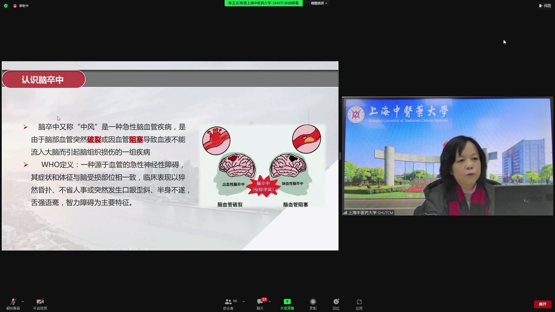 为进一步促进中医药的海外传播,增进中医药文化的国际影响力,12月1日至2日,我校与泰国华侨崇圣大学中医学院合作举办了为期两天的第九届中医药临床讲座。本次讲座以老年人常见病为主,从防病、治病、锻炼、养生等多方面开展讲解。讲座仍然采取线上会议的形式,在泰国从事中医执业的医生将近100人参加了此次讲座。