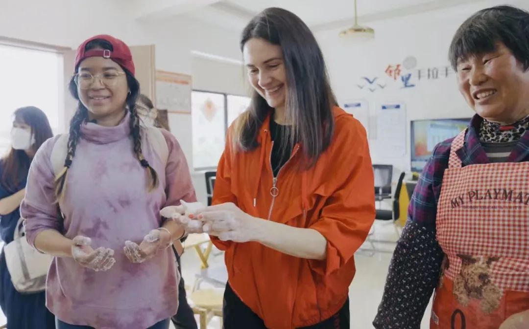赏完美景,学做美食。“非遗”美食“四团圆子”、“豆黄团”、“梅花糕”其制作技艺历经几十甚至几百年,每一样都有独特的味道和生动的故事。国际学生边听、边学,下锅后,美味更是引起赞声一片。