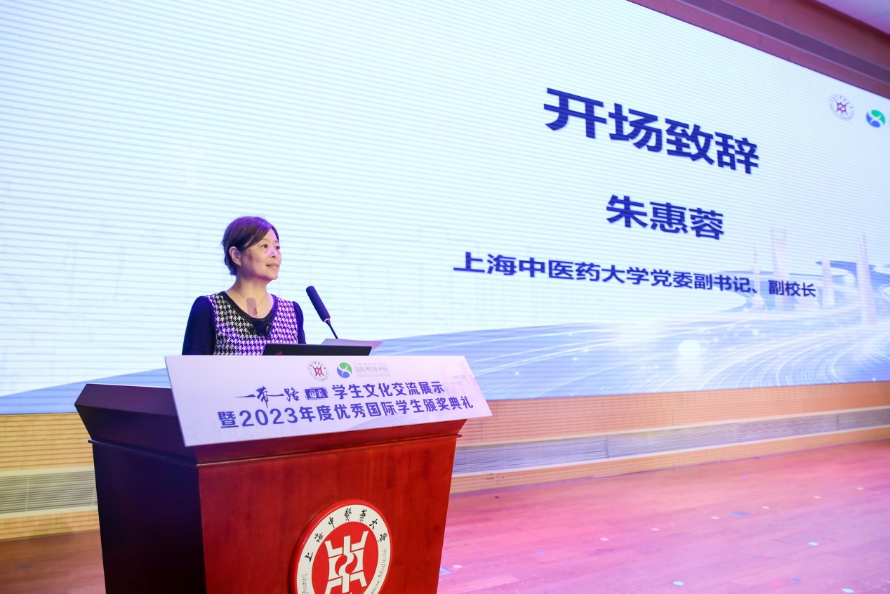 12月29日,“一带一路”国家学生文化交流展示暨2023年度优秀国际学生颁奖典礼举办。上海中医药大学党委副书记、副校长朱惠蓉,学校有关职能部门、二级学院负责人,临床医学院研究生导师代表及各类获奖国际学生代表,国际学生奖学金赞助企业负责人出席。上海市公安局出入境管理局、浦东公安分局出入境管理办公室和张江高校派出所警官也受邀参加此次活动。