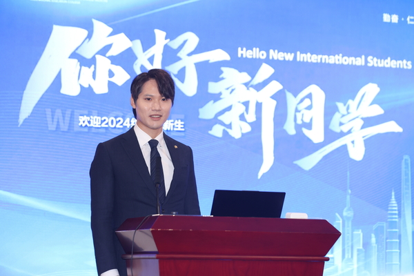 国际教育学院院长韩丑萍向2024级新生致欢迎辞,介绍了本届新生的整体情况,强调了学院多元文化的特点,为每一位同学的成长提供了独特的机遇与视角,寄语同学们在国际教育学院这个大家庭中尊重彼此文化的多元性和差异性,和谐相处、共同进步,表达了对同学们的美好期望和祝福,希望大家在国际教育学院度过充实而有意义的大学生活。