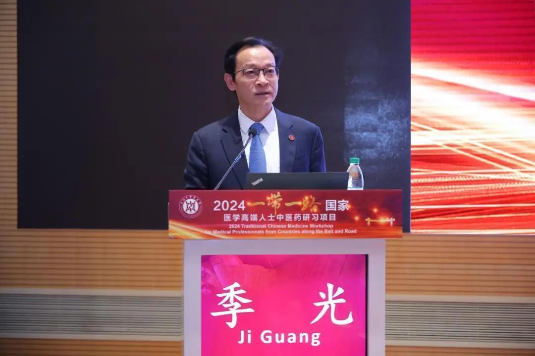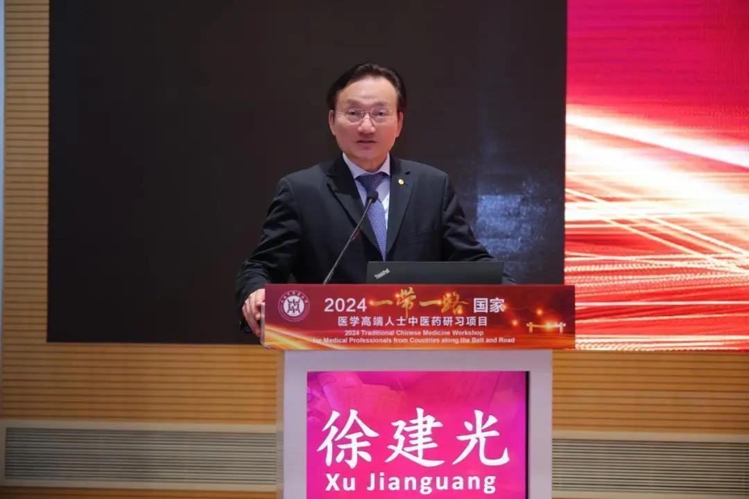 徐建光在致辞中强调,“一带一路”国家医学高端人士中医药研习班作为上海中医药国际传播的重要平台,增进了世界各国对中医药的了解,并促成了更为广泛的国际交流与深度合作,期盼全球专家通过研习班共绘中西医汇聚创新的未来蓝图。